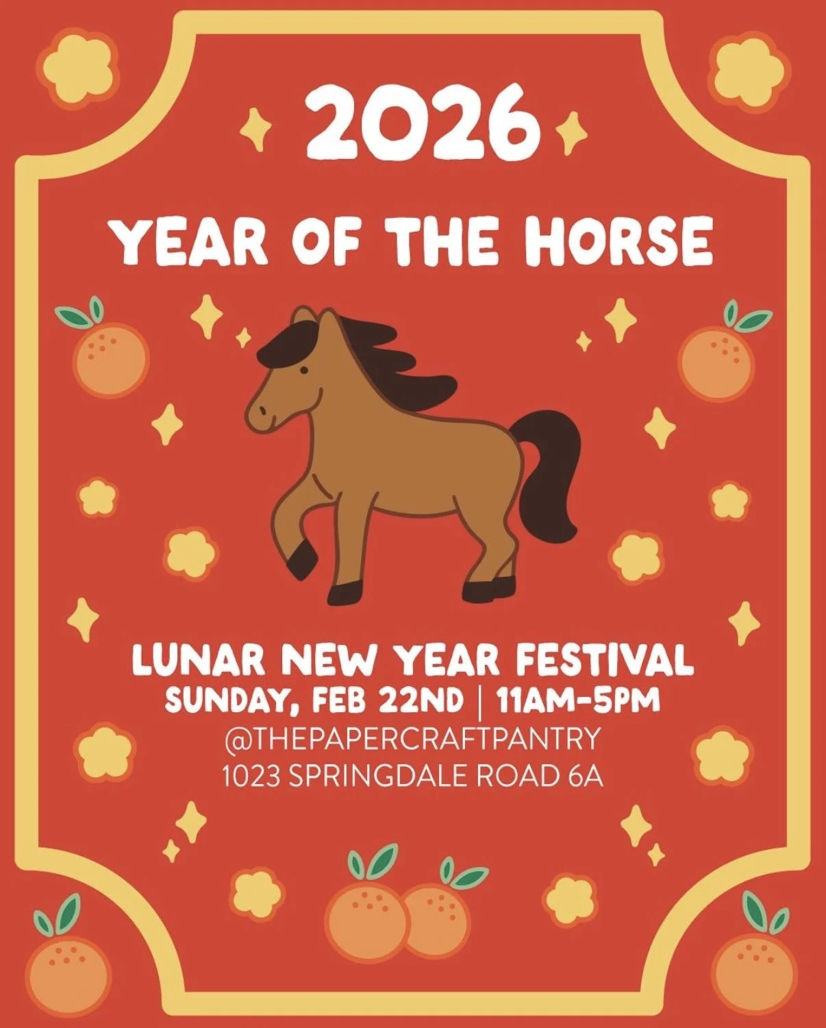 Join Springdale General at Paper + Craft Pantry for the 2026 Year of the Horse Lunar New Year at 1023 Springdale Rd.
