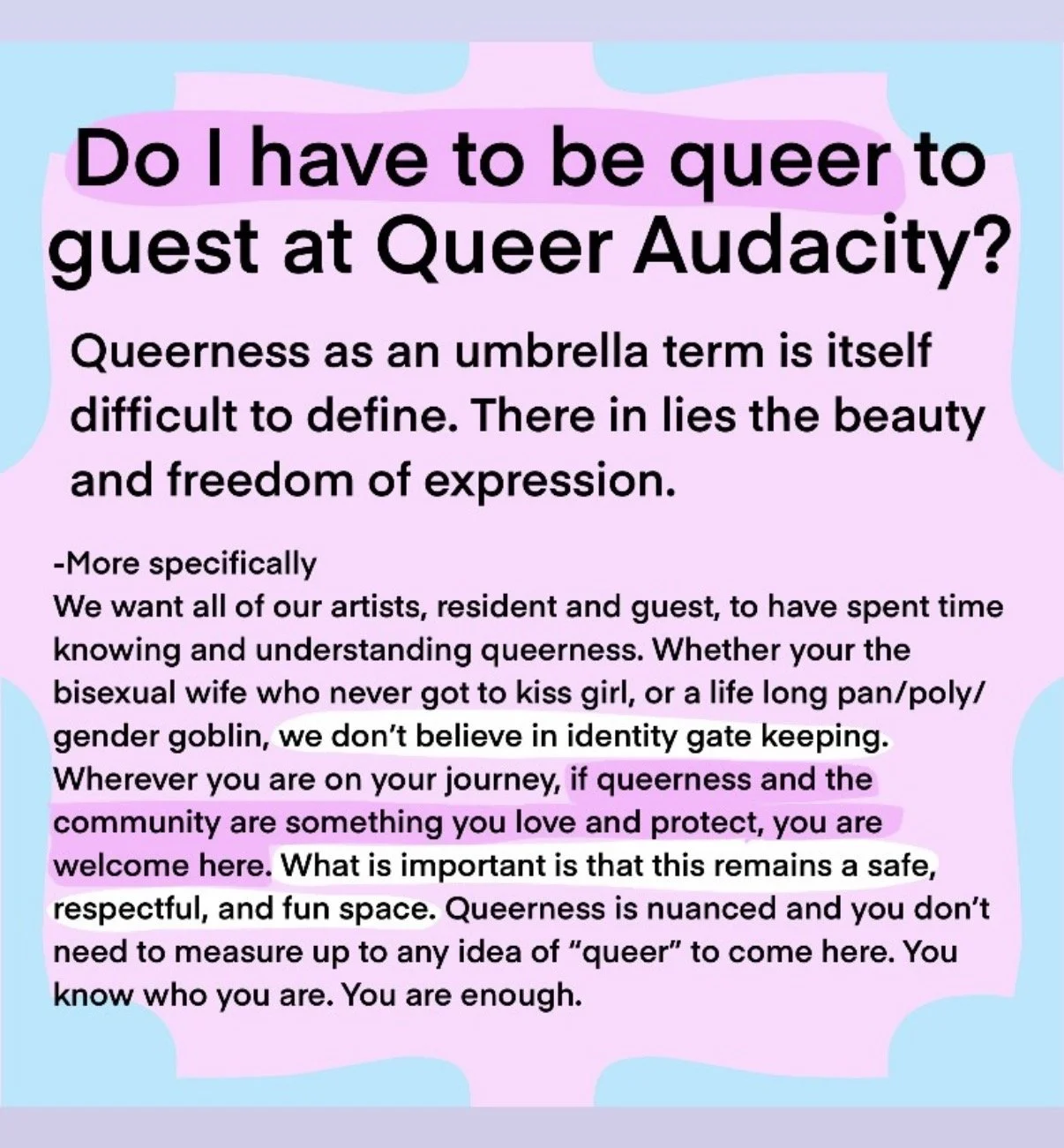 For event inquiries: Sunny@queeraudacityatx.com